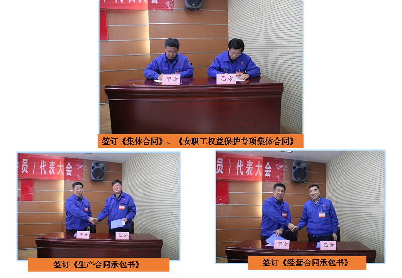 孙鸿钧就职工代表高度关注的热点问题进行了解答;签订了《集体合同》、《女职工权益保护专项集体合同》以及《生产经营承包合同书》;表彰了2018年度公司先进集体和优秀个人。